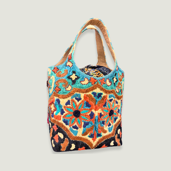 Casual handbag with full embroidery all over. Delicated embroidery made with raffia and beads.