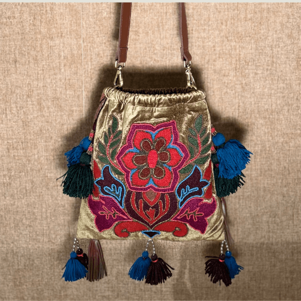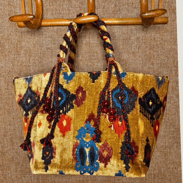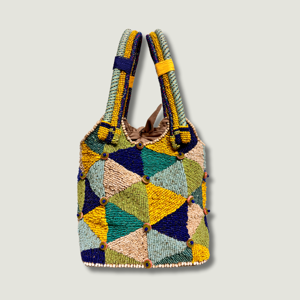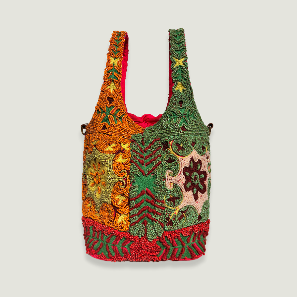 Inside 100 % cotton lining, mobile pocket closing with a cute cotton knot.
