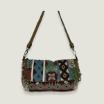 Shoulder mini baguette Sophisticated yarn & beads hand embroidery. Inside 100% cotton lining , zip pocket .