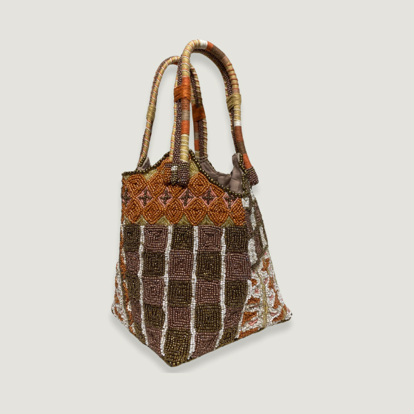 Mini handbag. Beads embroidery handmade. Cord and beads handmade handle. Inside 100 % cotton lining, mobile pocket closing with a cute cotton knot.