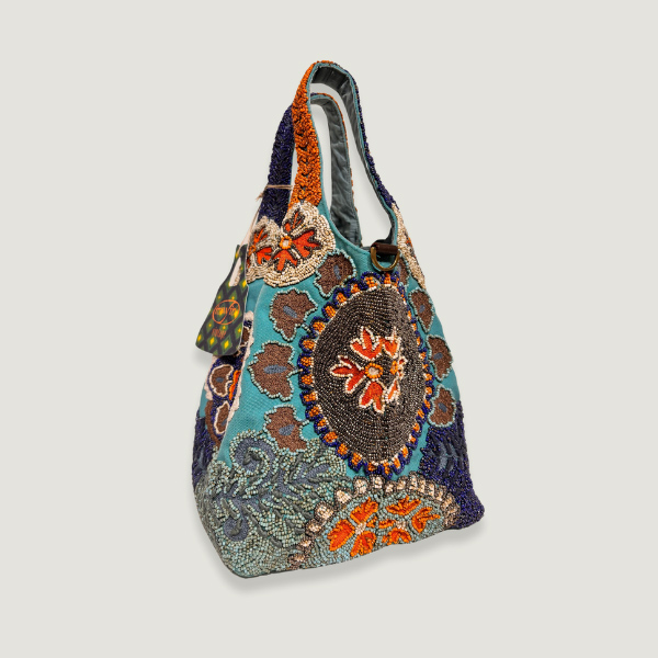 Handbag in cotton embroidered by hand . Delicated embroidery with yarn and beads.