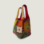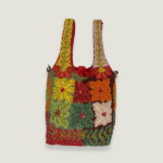 100% cotton canvas and glass beads.