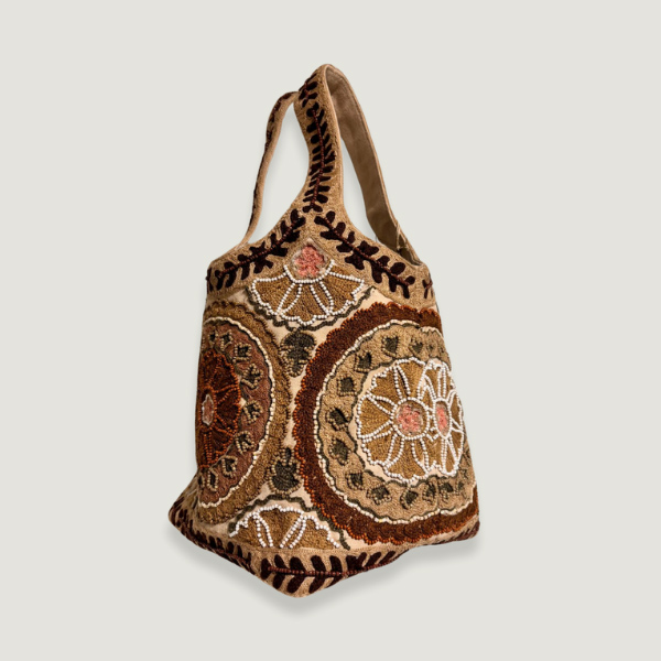 Handbag made in canvas with beautiful embroidery of yarn and beads.