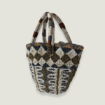 Beads handembroidery. Inside 100 % cotton lining, zip pocket closing with a leather strap with magnet.