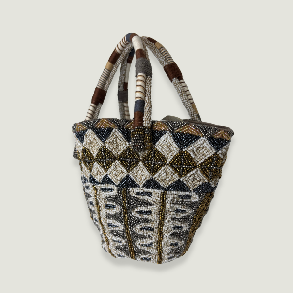 Handmade beads embroidery. Cute handle handmade with cord and beads. Extra beads removal cross handle.